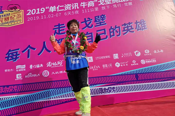 最終,四天三夜111公里的戈壁徒步她沖進前20,女子第7名,獲得最高成就獎胡楊獎以及沙克爾頓獎。